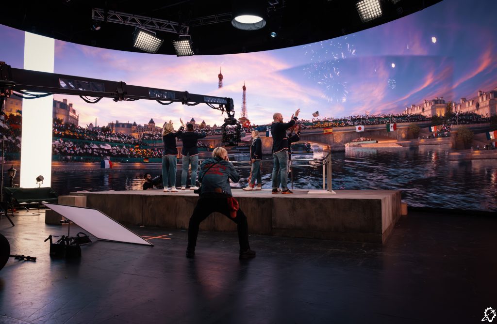 The Summer Olympics production was the debut of a new variation of ILM StageCraft. “We had invented this really cool thing that people wanted to use, but Star Wars was always using it,” says Milham. “So we needed to make another version that wasn’t limited to one place. It would be a huge advantage to bring StageCraft to the client. So we created a mobile system, which was deployed for the first time with the Paris Olympics.”